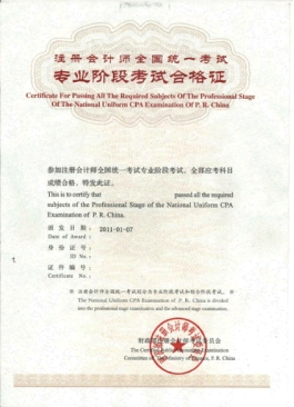 图8 CPA专业阶段和全科考试通过证书
