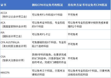 国际证书认可。持有注册会计师证书可免考其他国际证书的部分科目。以ACCA(国际注册会计师)为例,持有CPA证书可免考ACCA F1-F9阶段9个科目。